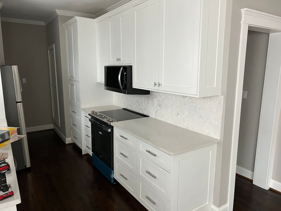 A collection of modern kitchen designs featuring granite countertops, stainless steel appliances, and herringbone backsplash patterns.